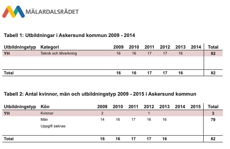 Kartläggning av kommunala yrkesutbildningar: Örebro län – Kommuner i Örebro län– Excel pivottabell Örebro