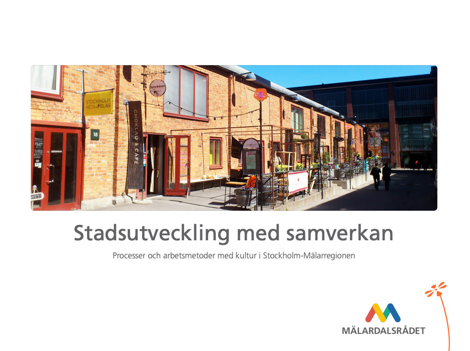 De exempel som rapporten diskuterar har valts ut för att belysa några olika perspektiv. Gemensamt för alla exempel är att det handlar om samverkan, framför allt mellan olika aktörer och offentliga organisationer. Rapporten tar särskilt upp det kulturella perspektivet, men tar en bred syn på kultur. Det innebär att exemplen i rapporten handlar om projekt som omfattar allt från musikevenemang till stadsodling som kulturellt uttryck.
